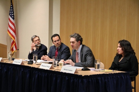 (Left to Right) Charles Fairbanks, Christopher Walker, Thomas de Waal, and Miriam Lanskoy discuss “A New Chance for Georgian Democracy” on January 23, 2013.