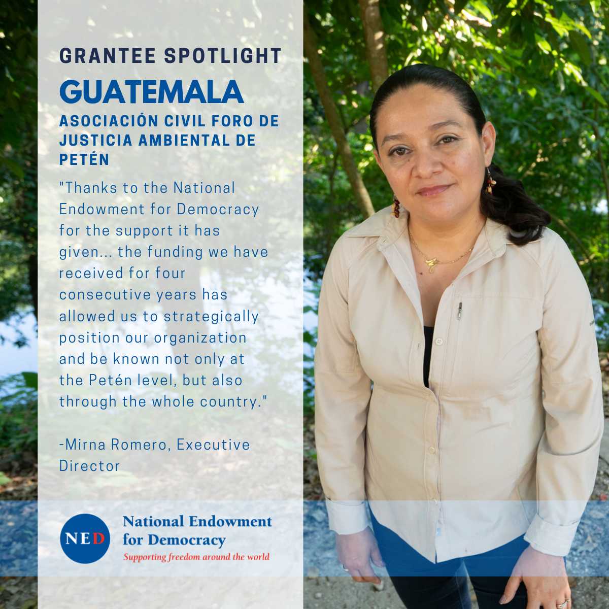 Guatemala has been identified as one of the planet’s richest and highly threatened biodiverse regions, making it one of the world’s top 25 biodiversity conservation hot spots, according to USAID. The Maya Biosphere Reserve (or RBM), covering 19% of Guatemala, is a jewel of natural beauty located in the heart of Guatemala. Under UNESCO protection since 1990, the lush rainforests of the Reserve have earned world fame, with visitors pouring in each year to see its exquisite array of breadnut and bullet trees, its stunning lakes and natural mountain ranges, as well as extraordinary animal life such as the Morelet’s crocodile. Unfortunately, even with the protection of UNESCO and Guatemala’s National Council of Protected Areas, the Reserve continues to be plagued by illegal natural resource extraction, from pillaging of its flora to poaching of its animals. The forest area of the Reserve has shrunk by 13 percent in the last 21 years, representing 8% of the entire reserve. Again, though, the people of Guatemala have come together to protect this precious national treasure. The Asociación Civil Foro de Justicia Ambiental de Petén, literally the Environmental Justice Forum of Petén (FJA) was created to address these threats and to strengthen the rule of law in the Reserve. FJA’s mission is to use strategic litigation of environmental crimes to improve environmental justice and protect the Reserve’s threatened natural resources. The FJA will use NED support to continue pursuing strategic litigation in emblematic cases of crimes against Mayan cultural heritage and illicit environmental exploitation within the Mayan Biosphere Reserve. The FJA will also train and improve their capacity to investigate and prosecute criminal cases within the Mayan Biosphere Reserve.