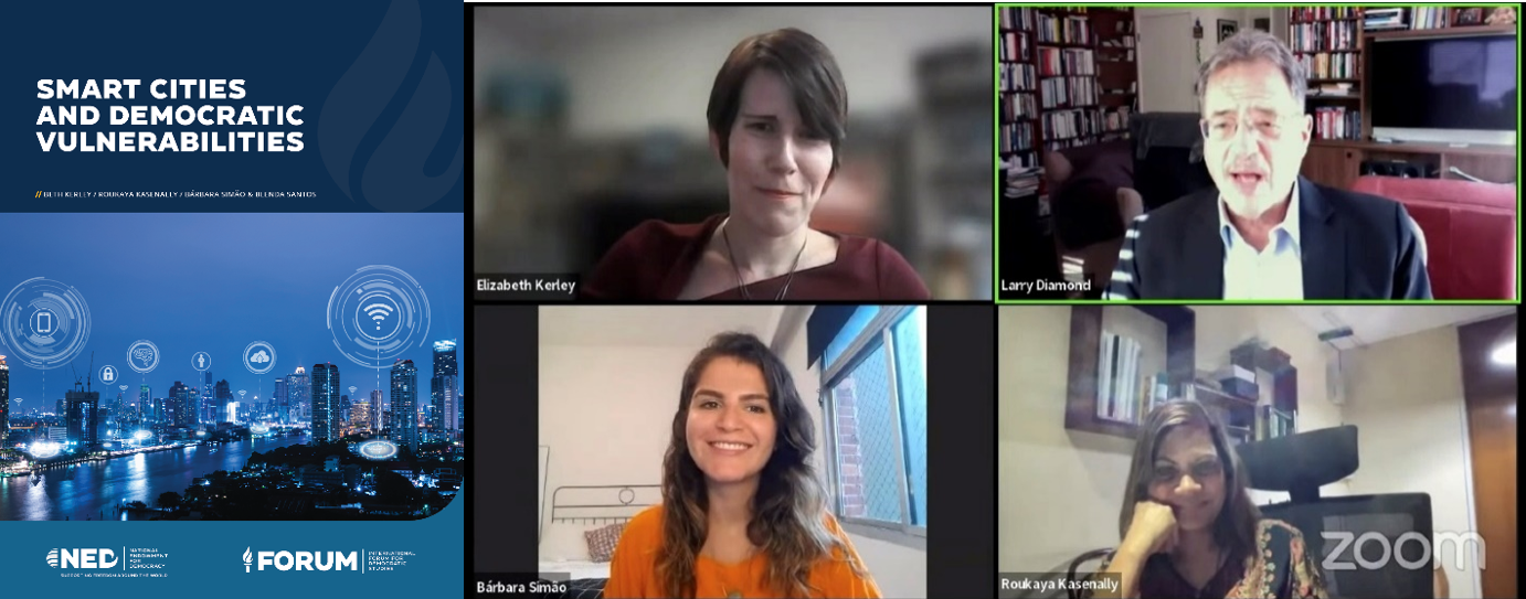 On February 8, the International Forum hosted a virtual discussion that examined smart cities in the context of democratic backsliding. Bárbara Simão of InternetLab and Roukaya Kasenally of the University of Mauritius, contributors to our recent report Smart Cities and Democratic Vulnerabilities, shared their findings on smart city governance in Brazil and Mauritius, with comments from Larry Diamond on the wider implications for struggling democracies. NED President Damon Wilson provided opening remarks and Program Officer Beth Kerley moderated the discussion. WATCH HERE