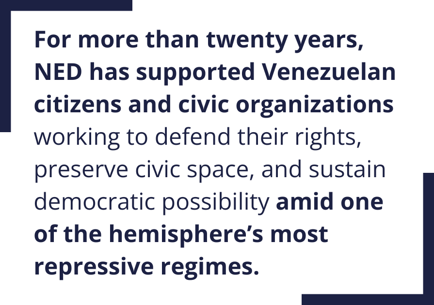 A defining challenge in Venezuela has been to preserve unity among democratic actors. NED-supported organizations have invested in long-term coordination efforts that help civic, political, business, labor, and community actors work across geographic, ideological, and sectoral lines.