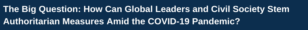 | Over the two years since the pandemic’s outset, authoritarian leaders have used the COVID-19 crisis as an opportunity to tighten their control and power. These regimes have grown more adept at silencing dissent at home and polluting the information space abroad. China and Russia’s geopolitical strategies, ostensibly aimed at mitigating the virus’ global toll, have raised questions about how democratic and authoritarian models of governance are perceived globally. At the same time, civil society groups have proven resilient in combating threats to democracy and human rights. We asked four experts from different regions of the world to comment on these trends as policymakers and global health leaders gather this week.