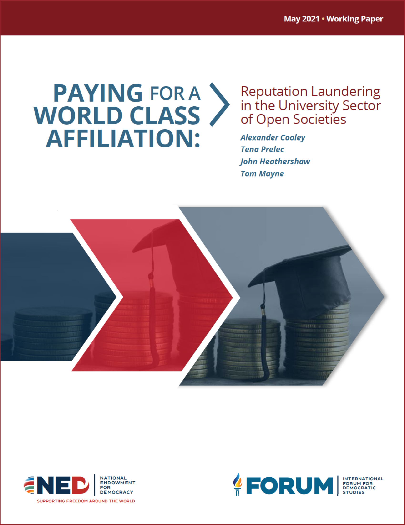 “Paying for a World Class Affiliation: Reputation Laundering in the University Sector of Open Societies,” authored by Alexander Cooley, Tena Prelec, John Heathershaw, and Tom Mayne, is a working paper produced by the National Endowment for Democracy’s International Forum for Democratic Studies.